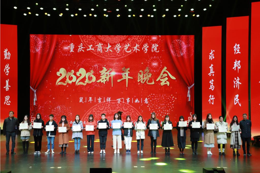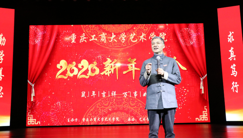 副校长陈运超,我校校友总会副会长兼艺术学院校友会会长、重庆港鑫建筑装饰设计有限公司董事长周勃,艺术学院校友会常务副会长、重庆凯翔文化传媒董事长甘智杰,校企合作代表、重庆俏业家装饰和维享家装饰董事长唐维升,党政办主任罗勇,艺术学院党政领导、教师和学生代表1000余人参加了新年晚会。