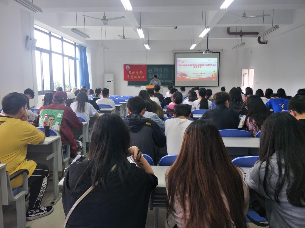 5月5日,经济学院分团委、学生会、党员服务站等学生组织,以座谈会、学习分享会等形式学习习近平总书记在纪念五四运动100周年大会上的重要讲话,经济学院党委副书记于频领学了讲话精神。