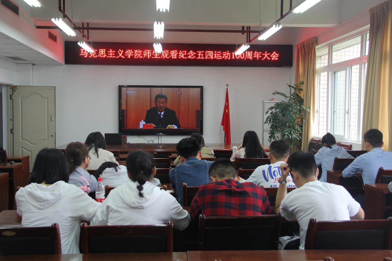 4月30日上午,纪念五四运动100周年大会在人民大会堂隆重举行,马克思主义学院组织师生在慧智楼91210会议室集中观看了直播盛况,并在大会结束后展开交流讨论。