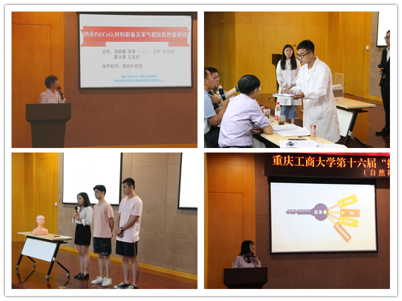 4月26日下午,由校团委主办、校学生会承办的第十六届“挑战杯”课外学术科技作品竞赛校内决赛在南岸校区新图书馆第一、第六会议室举行,哲学社会科学类和自然科学与科技发明制作类分别进行答辩。重庆邮电大学博士生导师徐仲伟教授,重庆社会科学院副院长张波教授,西南政法大学博士生导师赵树坤教授,我校党委研工部副部长王燕教授,商务策划学院梁云教授担任社科组评审;西南大学化学化工学院院长李练兵教授,重庆大学博士生导师欧阳奇教授、戴欣教授,重庆交通大学材料科学与工程学院应用化学系副系主任郭小峰教授,教育部废油资源化技术与装备工程研究中心张贤明教授担任自然科学组评审。