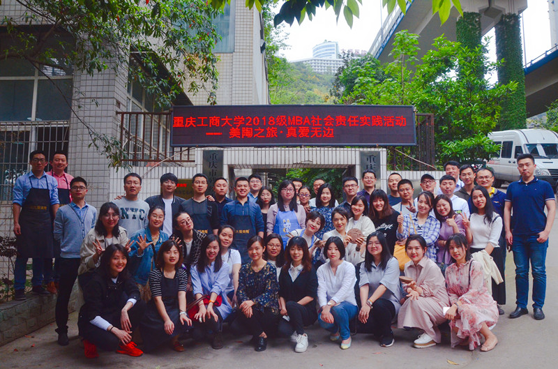在第十二个世界自闭症日“消除误区,倡导全纳”的倡导下,为加强心智障碍人士与社会的融合度,4月12日下午,万搏网页版_万搏(中国)官方在线登录MBA2018级2班的全体学员来到位于重庆市渝中区李子坝正街的重庆市残疾人文化产业示范基地(渝中区阳光职业康复园)开展慈善互助活动,与自强不息的心智障碍朋友们合作完成人生第一件自己的陶艺作品。