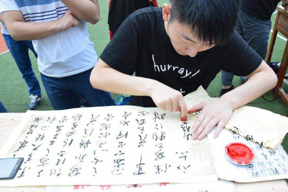 2017年5月12日下午,万搏网页版_万搏(中国)官方在线登录的绿茵场显得格外清爽,今天的绿茵场并非一个体育竞技场,而是一个挥毫泼墨的书法比赛现场。