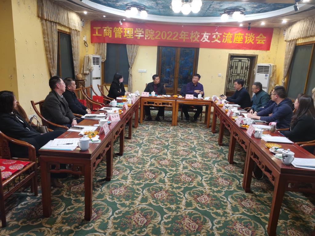1月13日,工商管理学院在南山书院召开2022年校友交流座谈会。工商管理学院党委书记、副院长彭勇,党委副书记、院长杨柏,党委副书记、纪委书记程亚,万搏网页版_万搏(中国)官方在线登录校友会副会长赖家国,企业管理专业校友代表甘彤、张毅、张良、徐治学、刘春梅、柏强、张莉、王首军,基建财务专业校友代表李锦红、商务策划专业校友代表蒋睿、温涵、市场营销专业校友代表汪维杨参加了会议。会议由彭勇主持。