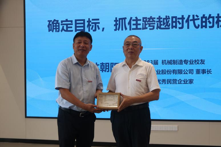 在热烈的掌声中,林朝阳校友开启了他的精彩分享。他谈到,自己从小就有一个“厂长梦”。毕业后,经过不懈努力,林朝阳校友于1987年出任重庆仪表分厂厂长。然而成功并非一帆风顺。“刚担任分厂长时,面临理念冲突与业绩压力,那段岁月异常艰难。”他坦言,尽管困难重重,他始终秉持“千磨万击还坚劲”的信念,在一次次挑战中学习成长。谈及耐德集团的创立历程,他分享了企业遭遇国外企业商业风波时的艰难处境,“每一次危机都是生与死的考验,但我们从未放弃。”正是这种坚韧不拔的精神,让耐德集团在风雨中不断成长壮大。谈到此处,林朝阳谦逊的说起过往,“一个平凡的人在平凡的每一天坚持不懈地努力。”分享的最后,林朝阳对在场的学弟学妹们寄予殷切期望,“现在是新的时代,你们的思想比我们当年先进得多。机械科研的道路上,既要保持先进思想,更要坚持不懈,朝着目标大步向前。”